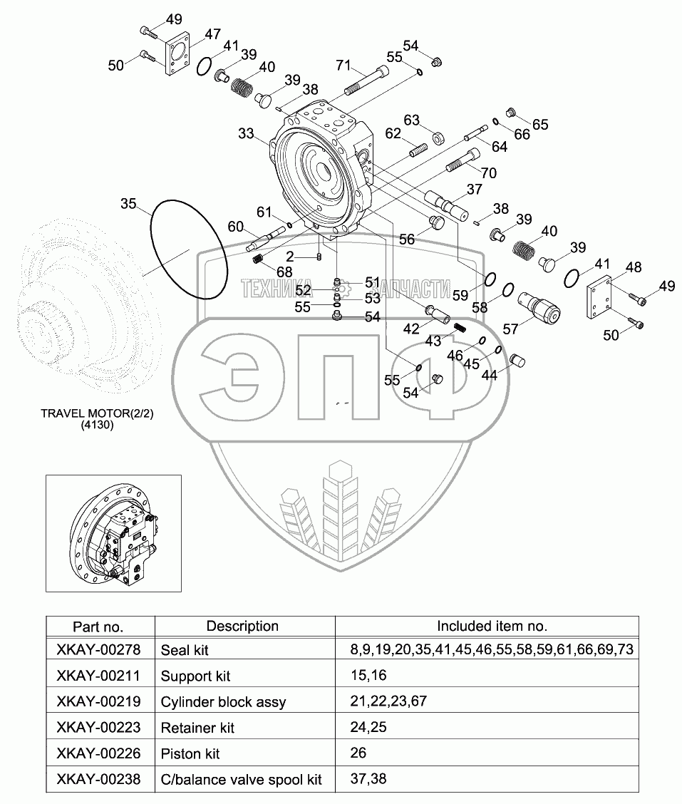 Каталог запасных частей к технике: Hyundai R330LC-9S. TRAVEL MOTOR (1/2)