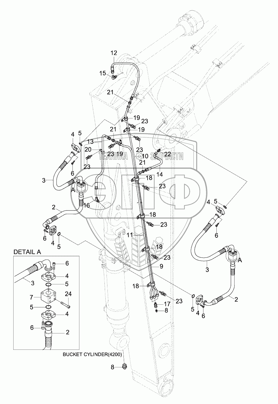 Каталог запасных частей к технике: Hyundai R330LC-9SH. ARM HYD PIPING (4.05M)