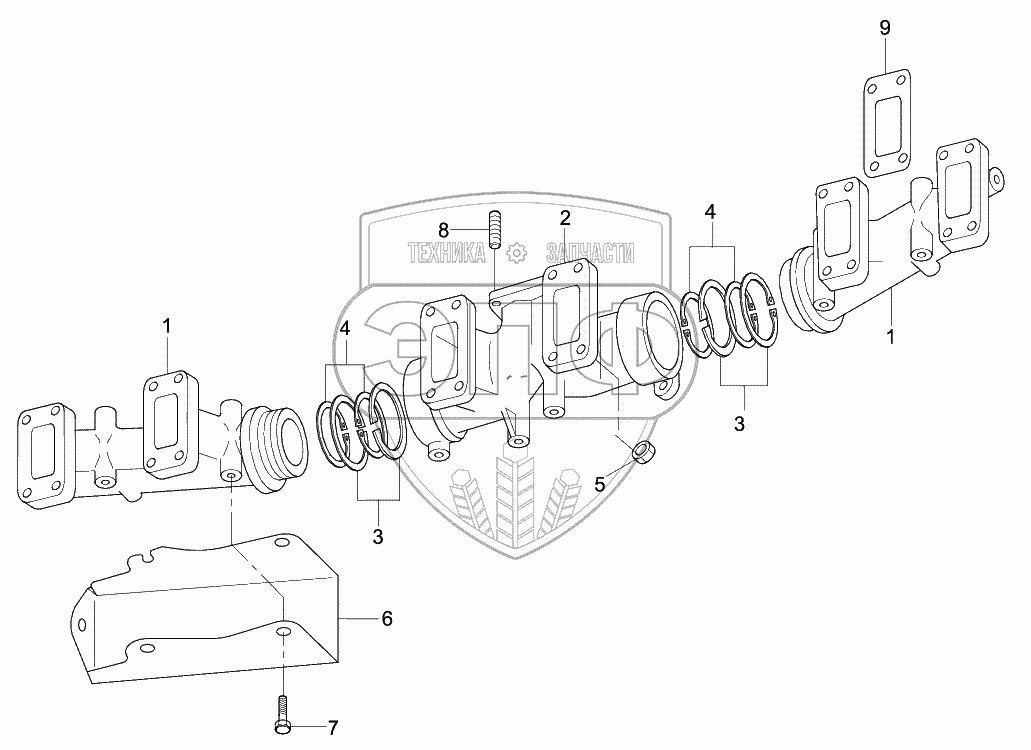 Каталог запасных частей к технике: Hyundai R330LC-9SH. EXHAUST MANIFOLD