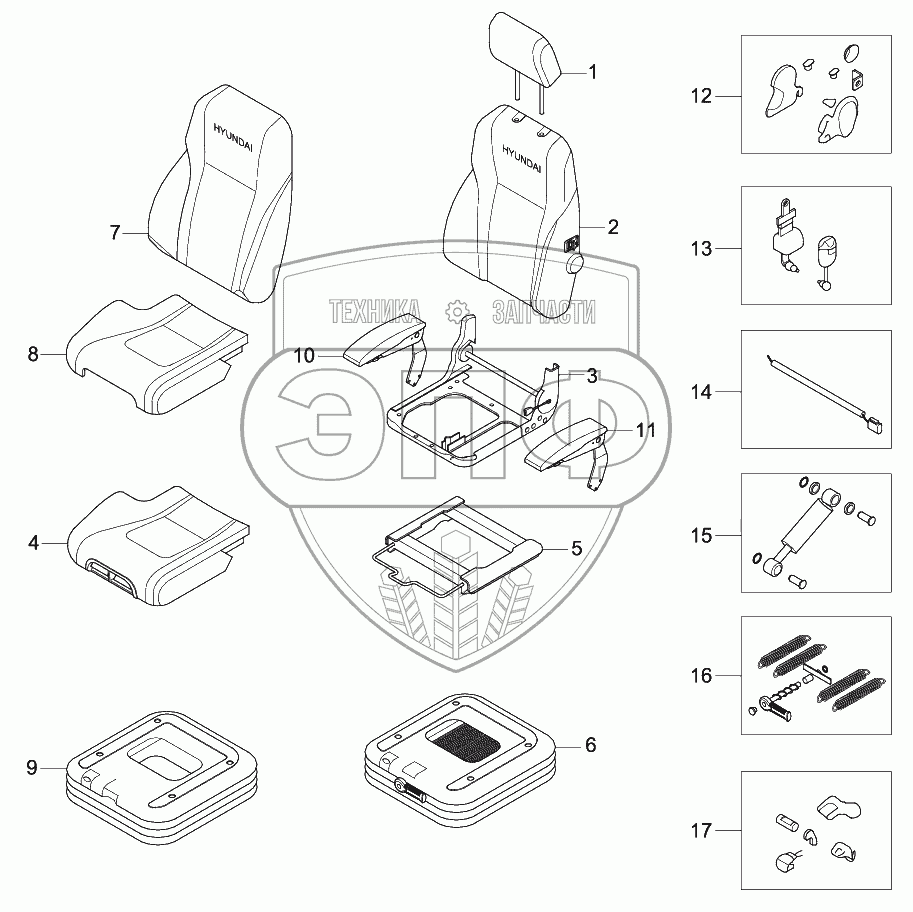 Каталог запасных частей к технике: Hyundai R330LC-9SH. SEAT (SUSPENSION, HEATED)