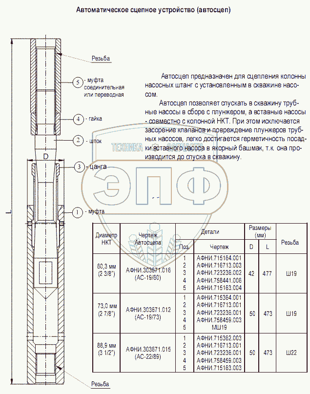 Каталог запасных частей к технике: Ижнефтемаш ГШН. Автоматическое сцепное устройство (автосцеп)