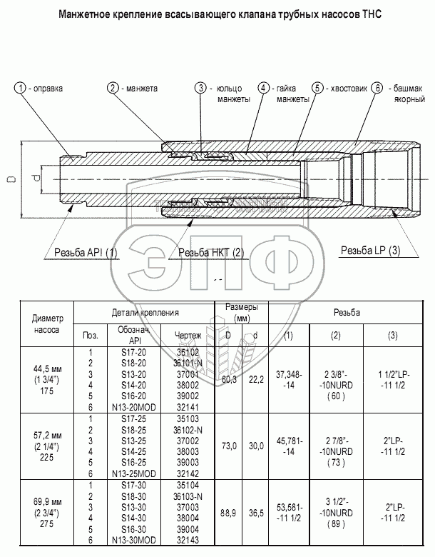 Каталог запасных частей к технике: Ижнефтемаш ГШН. Манжетное крепление всасывающего клапана трубных насосов ТНС