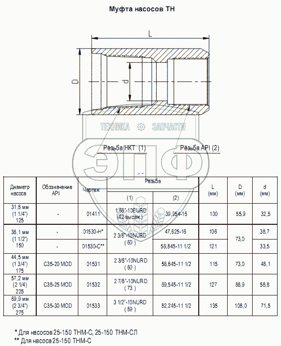 Каталог запасных частей к технике: Ижнефтемаш ГШН. Муфта насосов TH