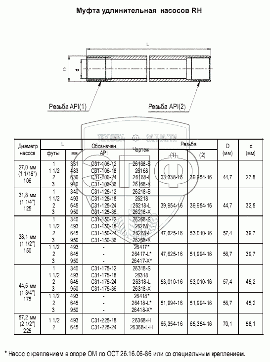 Каталог запасных частей к технике: Ижнефтемаш ГШН. Муфта удлинительная насосов RH