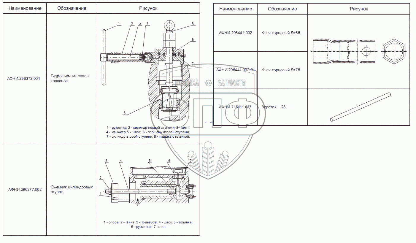 | АФНИ.296377.002 | АФНИ.296377.002 | Съемник цилиндровых втулок | Нет на складе | |