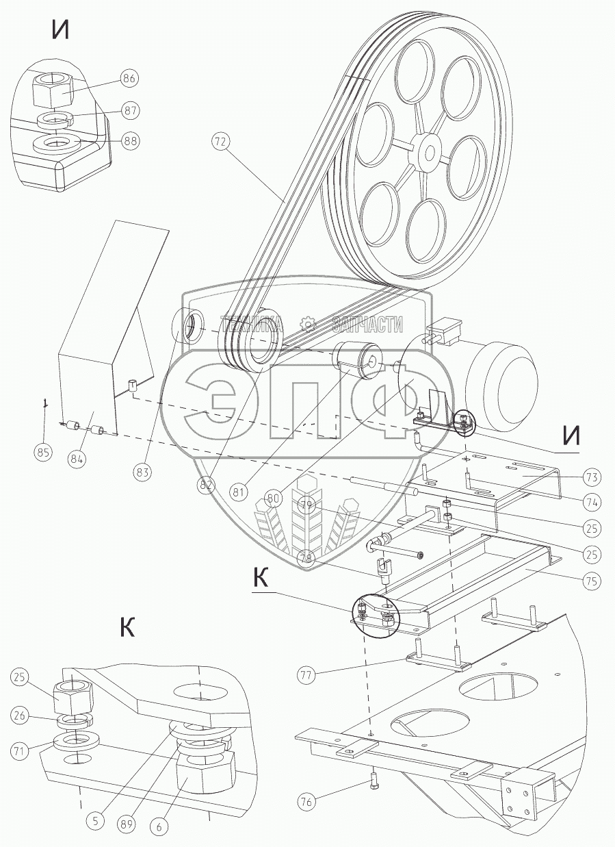 Каталог запасных частей к технике: Ижнефтемаш ПНШТ-60-3-31,5. Крепление двигателя
