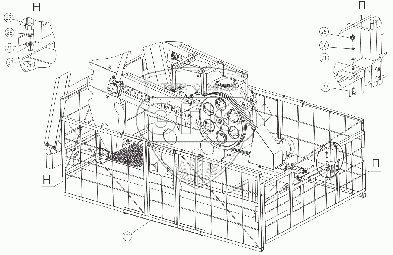Каталог запасных частей к технике: Ижнефтемаш ПНШТ-60-3-31,5. Крепление ограждения