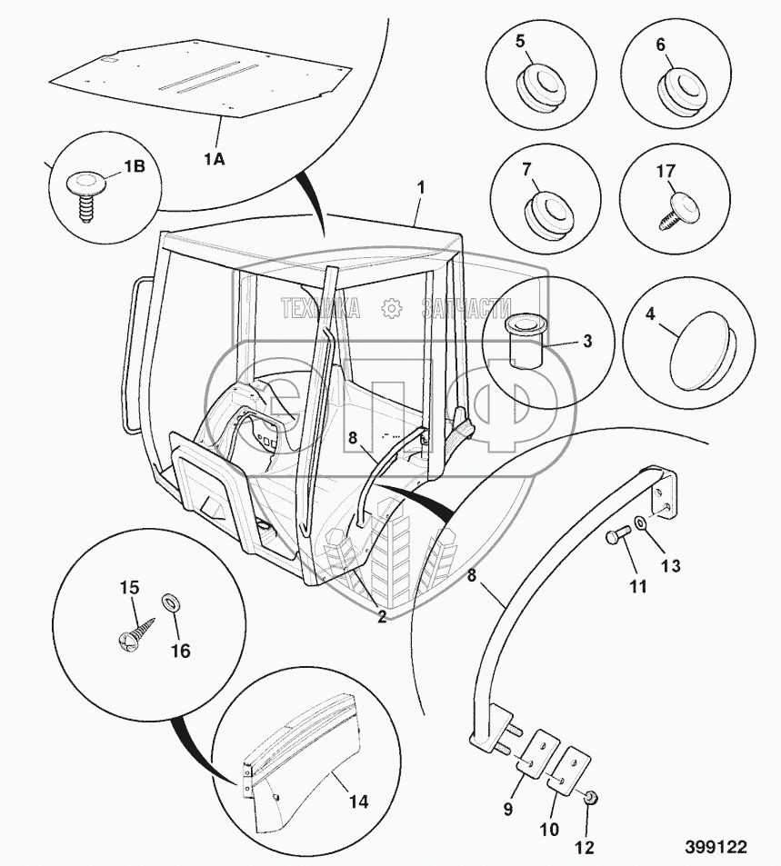 Каталог запасных частей к технике: JCB 4CX. CANOPY (From: M1341488, To:)