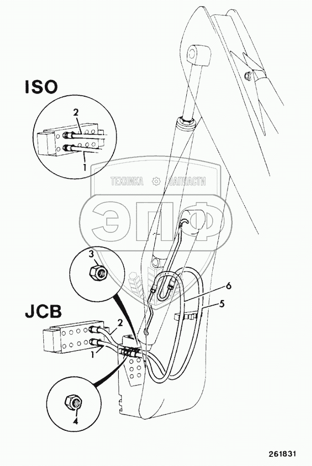 Каталог запасных частей к технике: JCB 4CX. CIRCUIT, BOOM RAM 15'6"