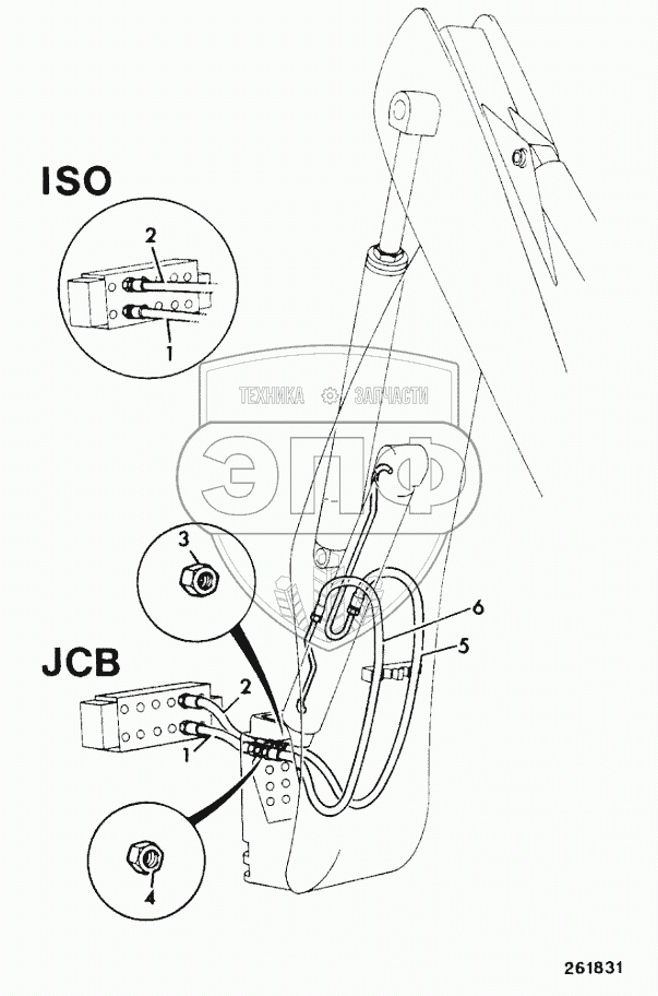 Каталог запасных частей к технике: JCB 4CX. CIRCUIT, BOOM RAM HEAVY DUTY 1400