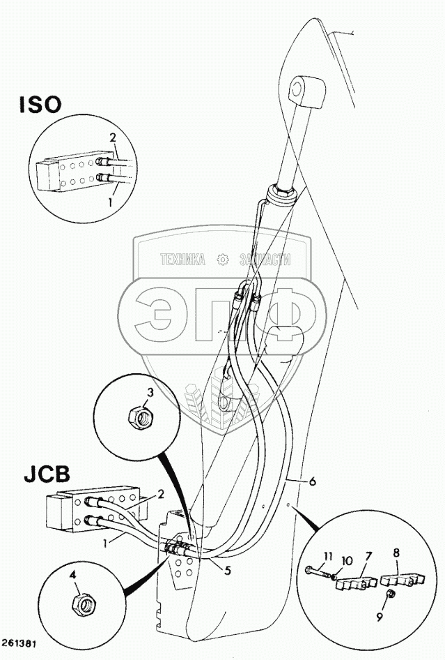 Каталог запасных частей к технике: JCB 4CX. CIRCUIT, DIPPER RAM 15'6" DIPPERS