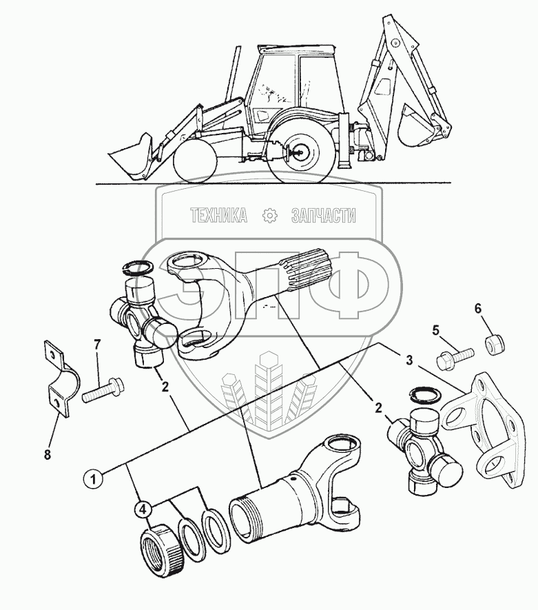 Каталог запасных частей к технике: JCB 4CX. PROPSHAFT TRANS. / REAR AXLE SYNCROSHUTTLE, CENTREMOUNT