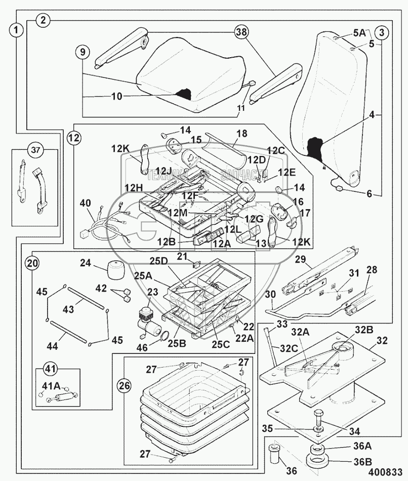 Каталог запасных частей к технике: JCB 4CX. SEAT, AIR SUSPENSION