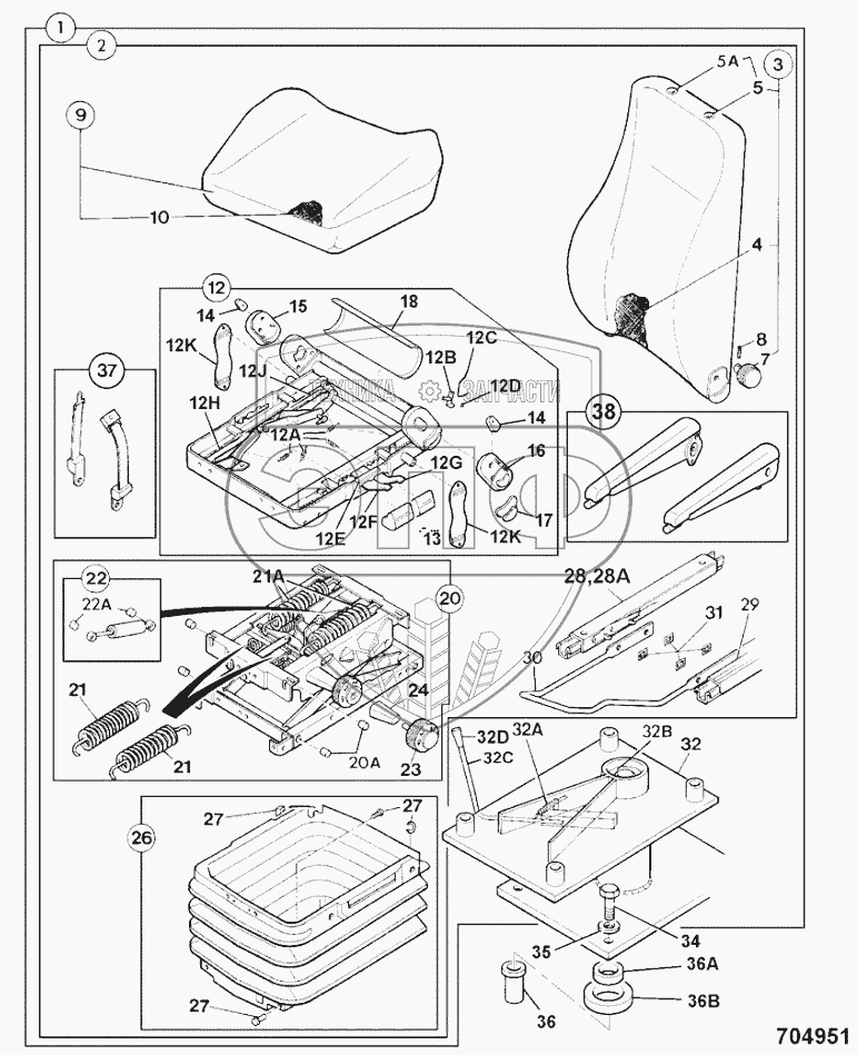 Каталог запасных частей к технике: JCB 4CX. SEAT, SUSPENSION