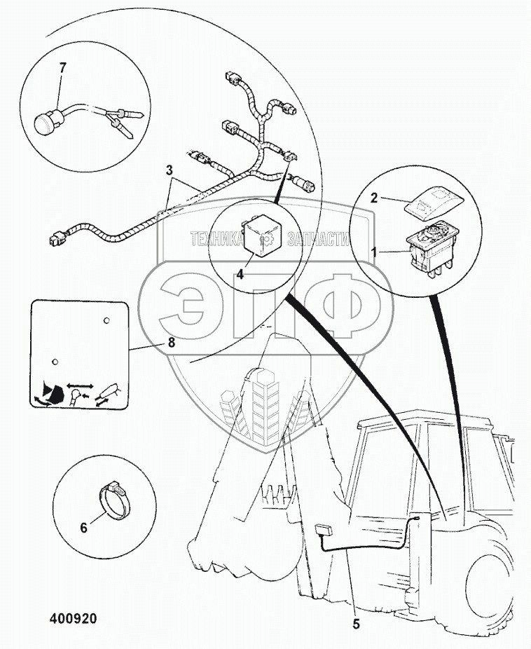 Каталог запасных частей к технике: JCB 4CX. SWITCH, JAW/EXTRADIG ATTACHMENT
