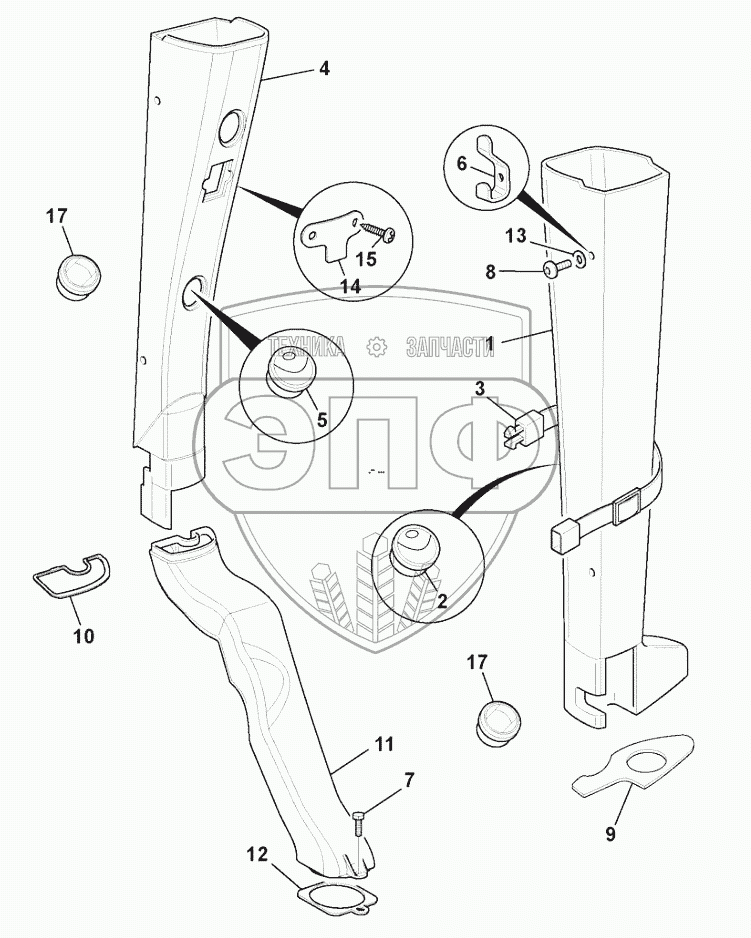 Каталог запасных частей к технике: JCB 4CX. TRIM, B POST COVERS CAB