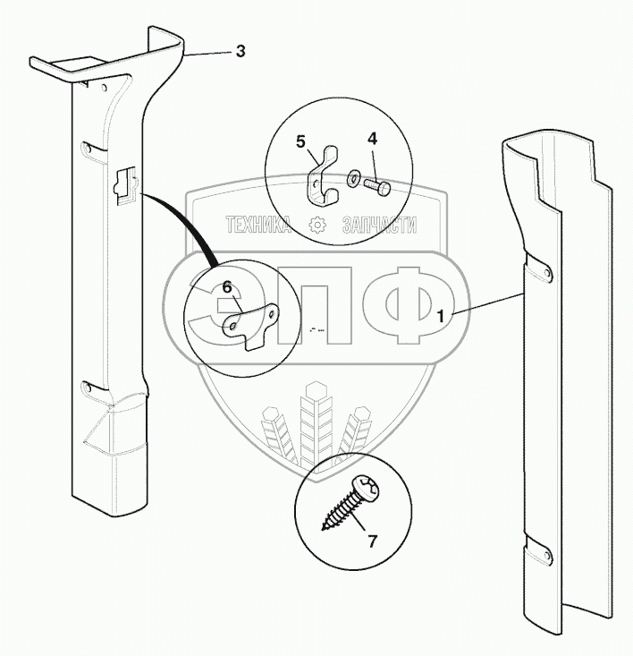 Каталог запасных частей к технике: JCB 4CX. TRIM, B POST COVERS CANOPY