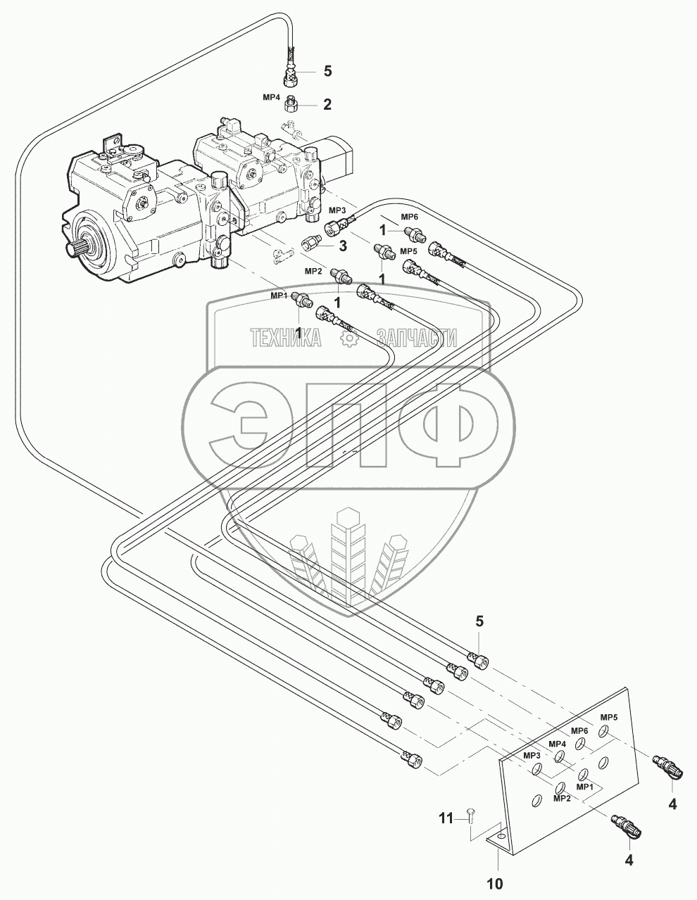 Каталог запасных частей к технике: JCB VM-115 D/PD. Трубопроводы/Hydraulic measuring points