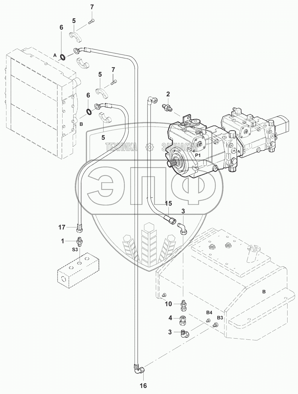 Каталог запасных частей к технике: JCB VM-115 D/PD. Трубопроводы охлаждения/Cooler line