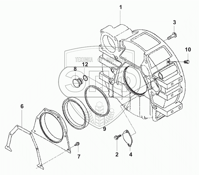 Каталог запасных частей к технике: JCB VM-132D/PD. Картер маховика/Flywheel housing
