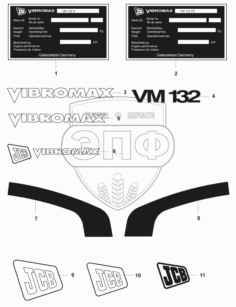 Каталог запасных частей к технике: JCB VM-132D/PD. Таблички/Decals