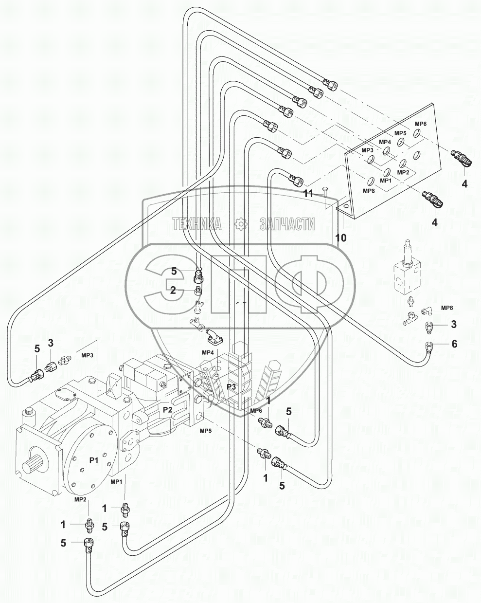 Каталог запасных частей к технике: JCB VM-132D/PD. Трубопроводы/Hydraulic measuring points