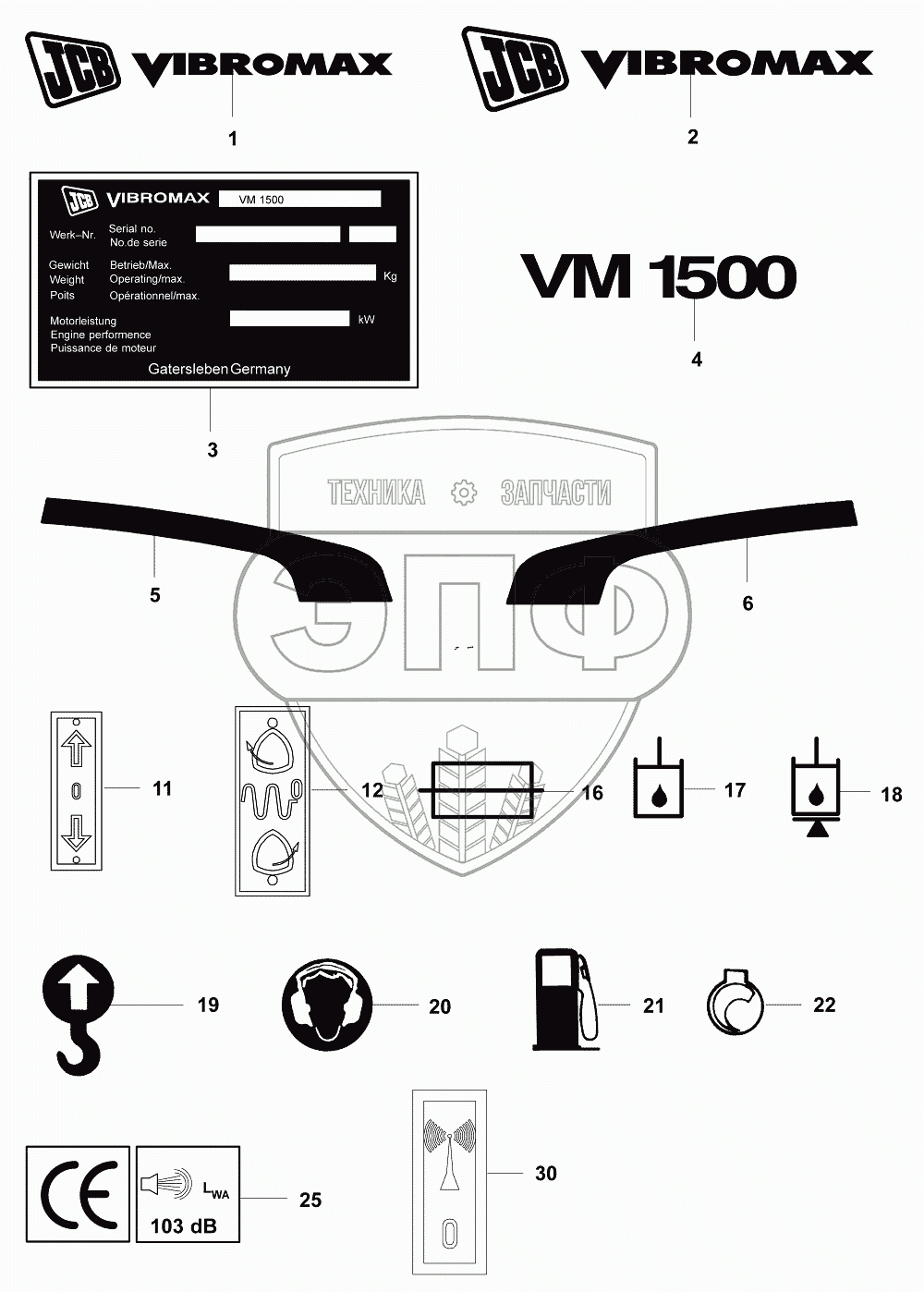 Каталог запасных частей к технике: JCB VM-1500-1601300. Таблички