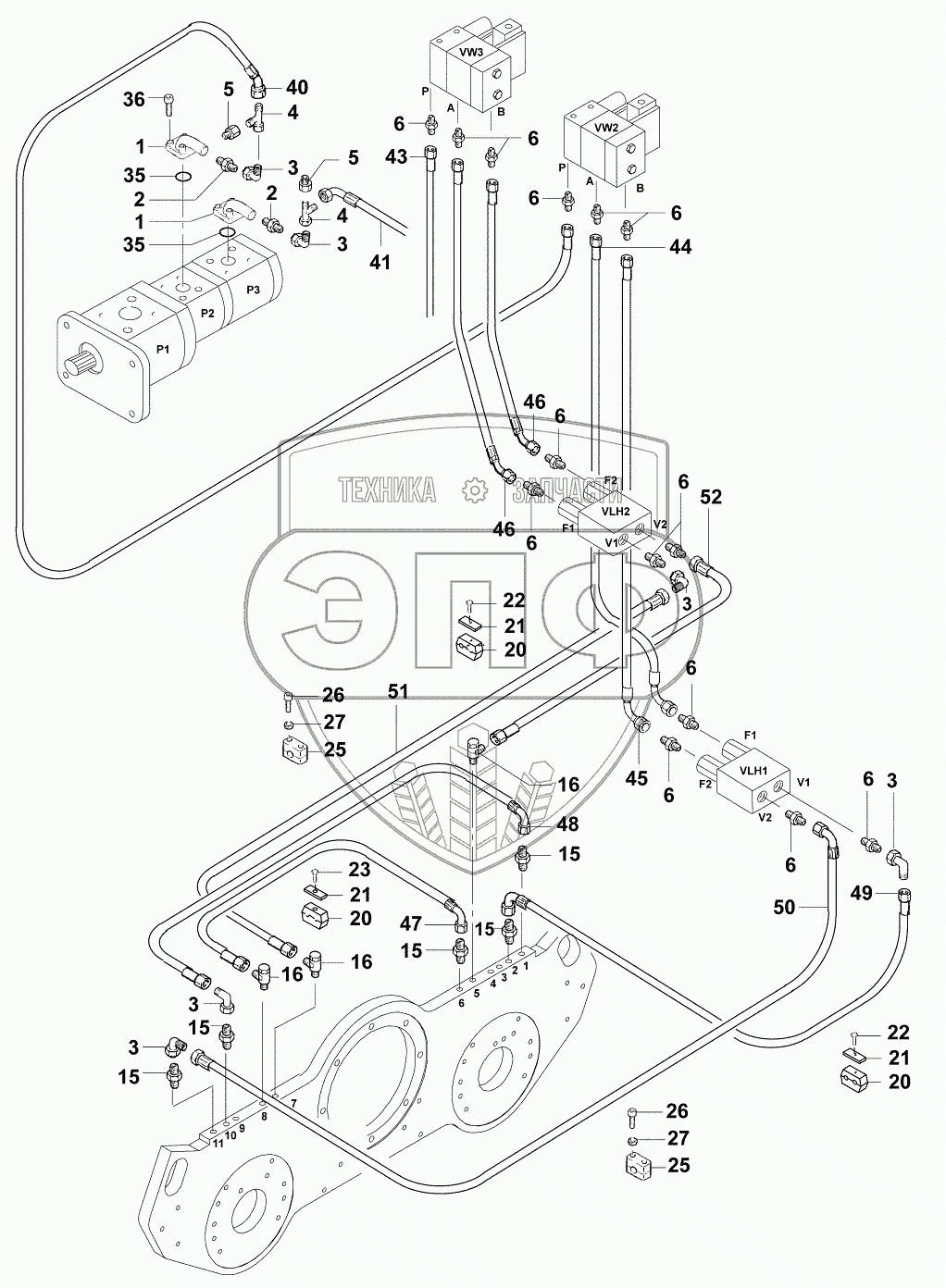 Каталог запасных частей к технике: JCB VM-1500-1601300. Трубопроводы
