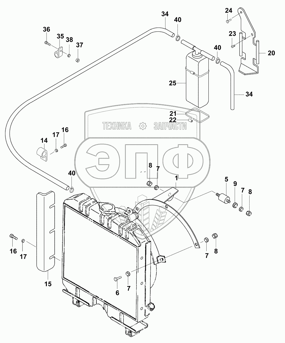 Каталог запасных частей к технике: JCB VM-1500-1601300. Установка радиатора