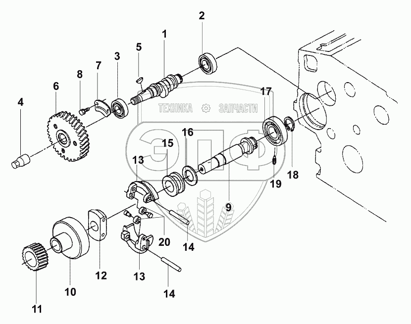 Каталог запасных частей к технике: JCB VM-1500-1601300. Вал распределительный