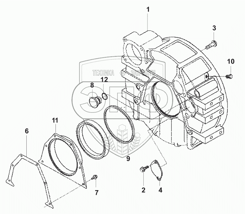 Каталог запасных частей к технике: JCB VM-200D/PD. Картер маховика
