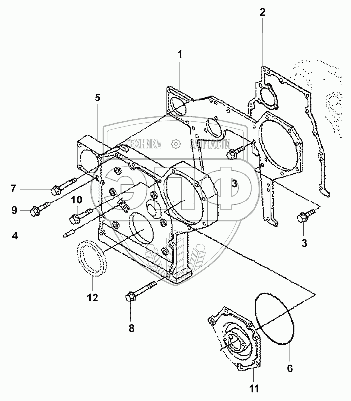 Каталог запасных частей к технике: JCB VM-46D/PD. Крышка шестерен/Front gear cover