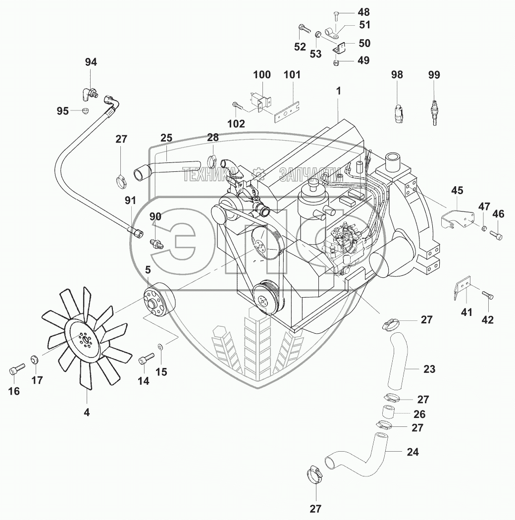 Каталог запасных частей к технике: JCB VM-46D/PD. Установка двигателя/Structure motor