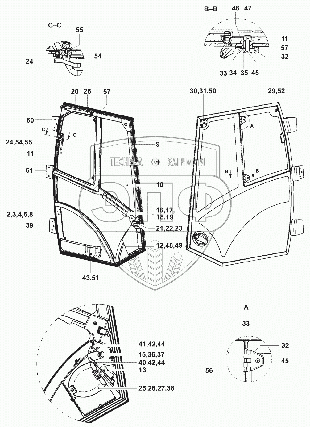 Каталог запасных частей к технике: JCB VM-75D/PD. Двери кабины/ROPS-Cab