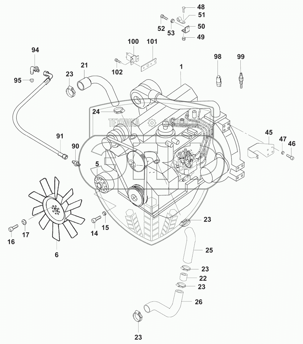 Каталог запасных частей к технике: JCB VM-75D/PD. Установка двигателя/Structure motor