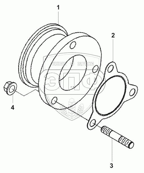 Каталог запасных частей к технике: JCB VM-75D/PD. Выпускной фланец/Connection-Exhaust