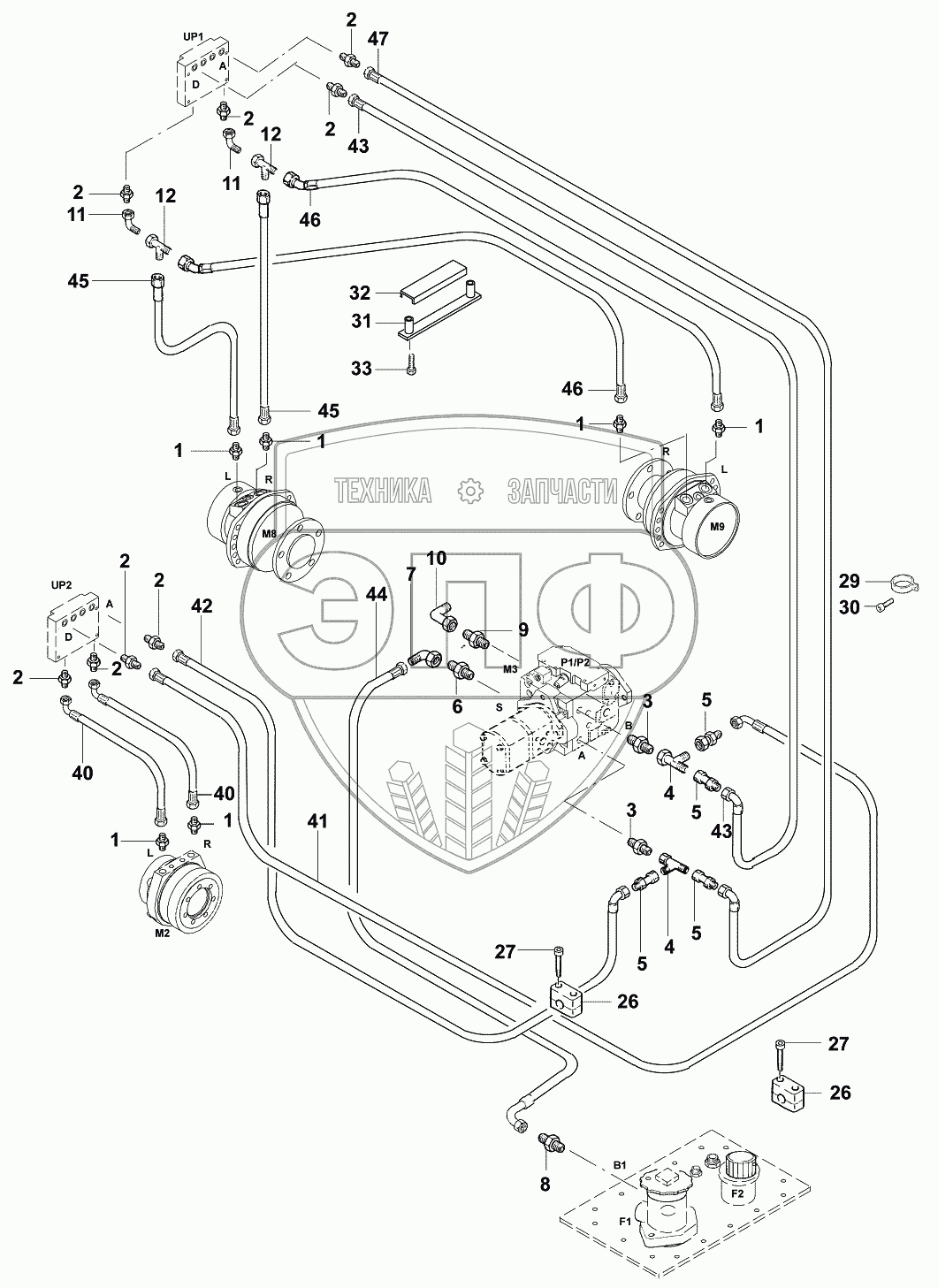 Каталог запасных частей к технике: JCB VMТ-270/280. Гидросистема/Propulsion