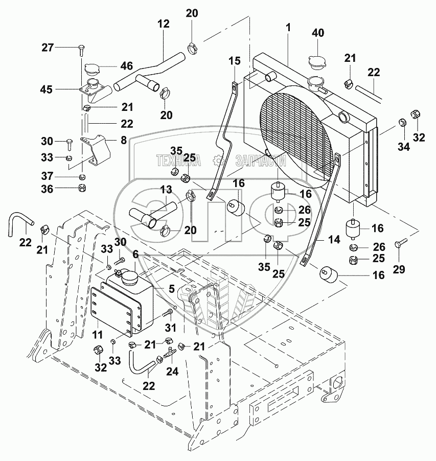 Каталог запасных частей к технике: JCB VMТ-270/280. Установка радиатора/Instalation cooler