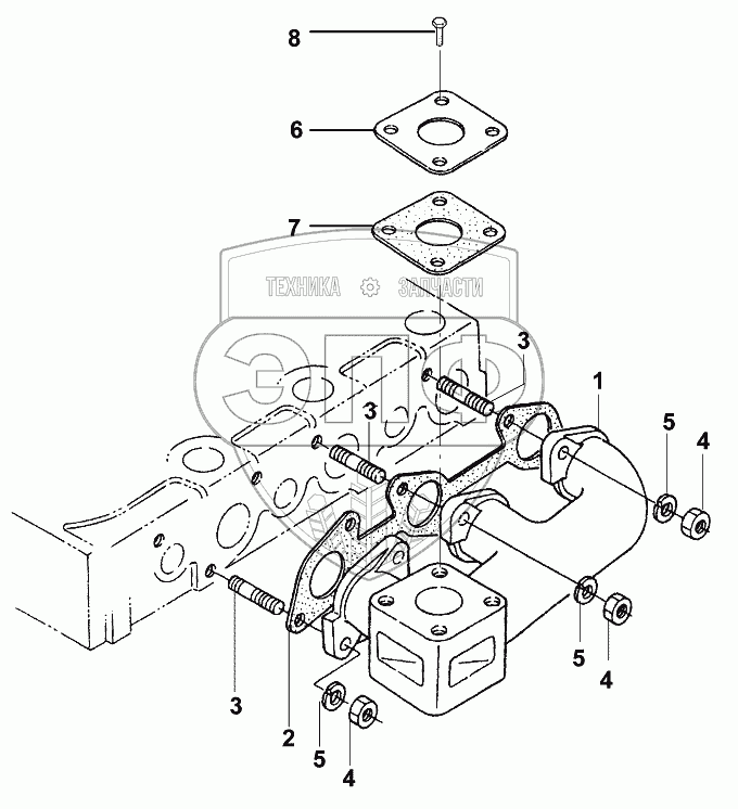 Каталог запасных частей к технике: JCB VMТ-270/280. Выпускной коллектор/Exhaust manifold