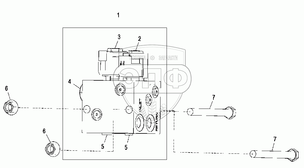 Каталог запасных частей к технике: John Deere JD-325SK. Клапан блокировки бокового смещения