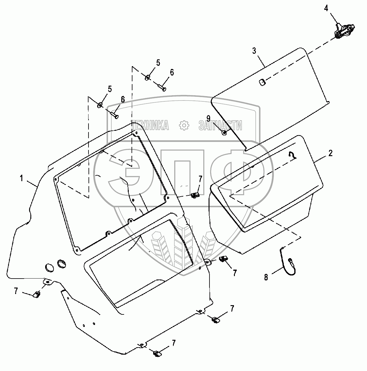 Каталог запасных частей к технике: John Deere JD-325SK. Консоль приборной панели, кабина