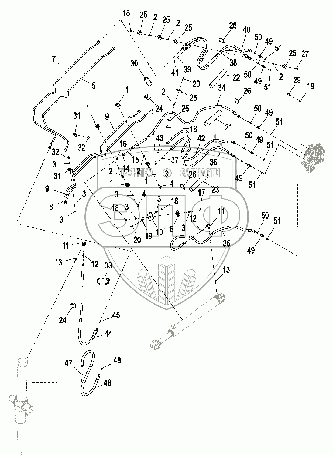 Каталог запасных частей к технике: John Deere JD-325SK. Правый трубопровод погрузчика