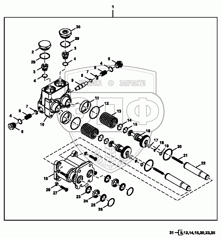 Каталог запасных частей к технике: John Deere JD-325SK. Сборка тормозного клапана