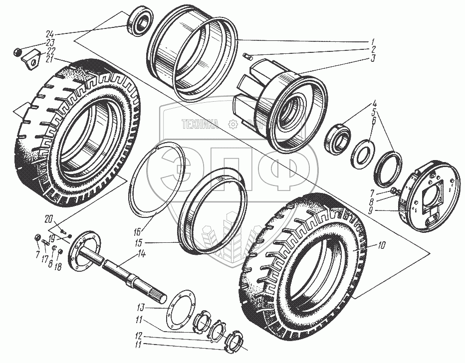 Каталог запасных частей к технике: Канаш-электрокар ЭП-2014. Ступицы и колеса ведущего моста