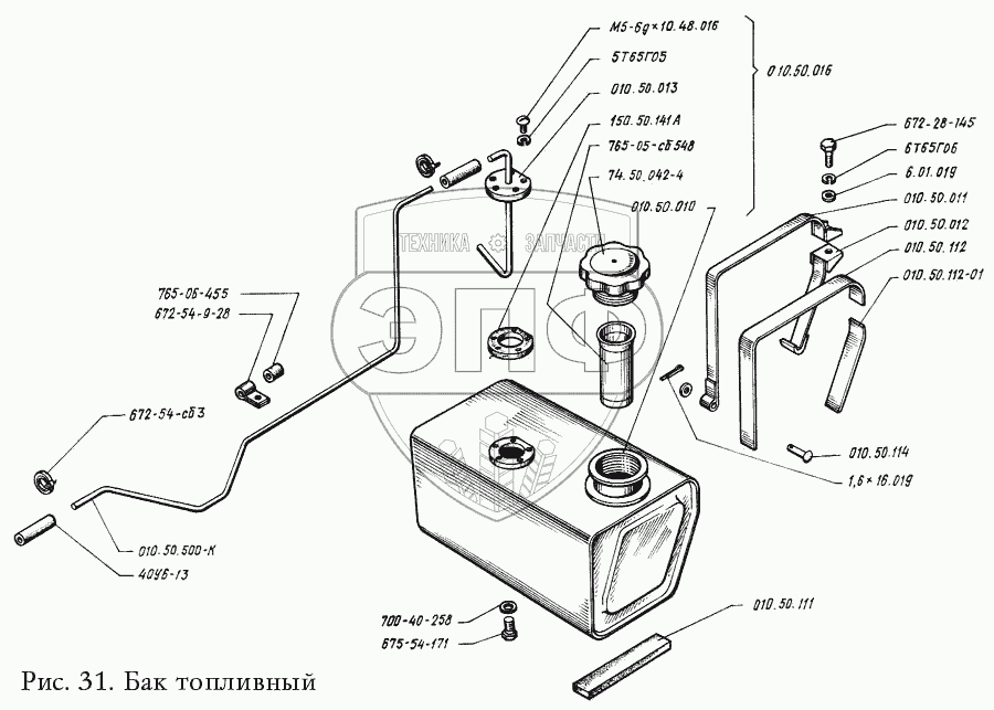 Каталог запасных частей к технике: КМЗ-012. Бак топливный 010.50.001
