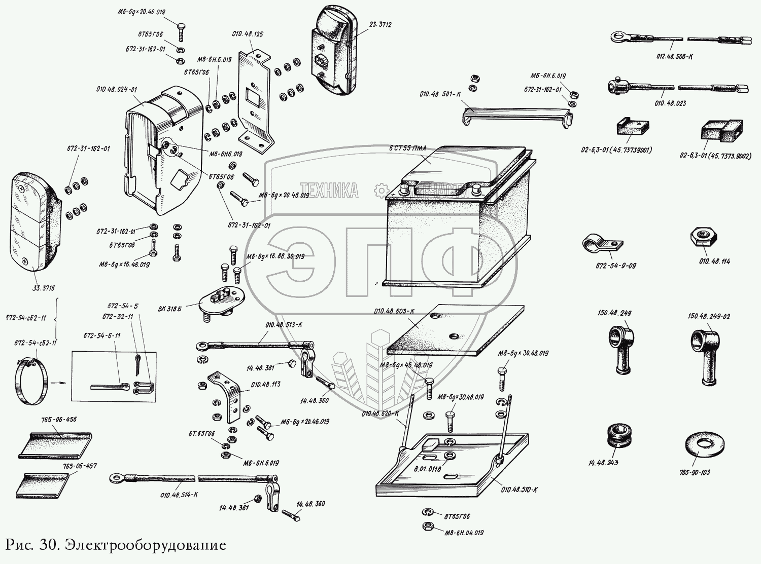 Каталог запасных частей к технике: КМЗ-012. Электрооборудование 012.48.500К