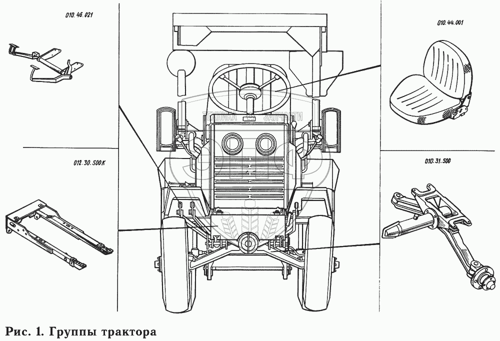 Каталог запасных частей к технике: КМЗ-012. Группы трактора