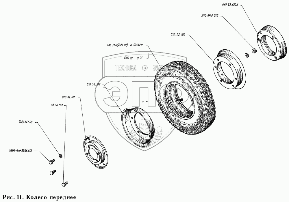 Каталог запасных частей к технике: КМЗ-012. Колесо переднее 012.32.500К