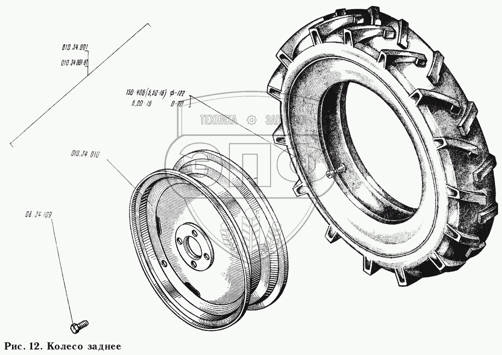 Каталог запасных частей к технике: КМЗ-012. Колесо заднее 010.34.001