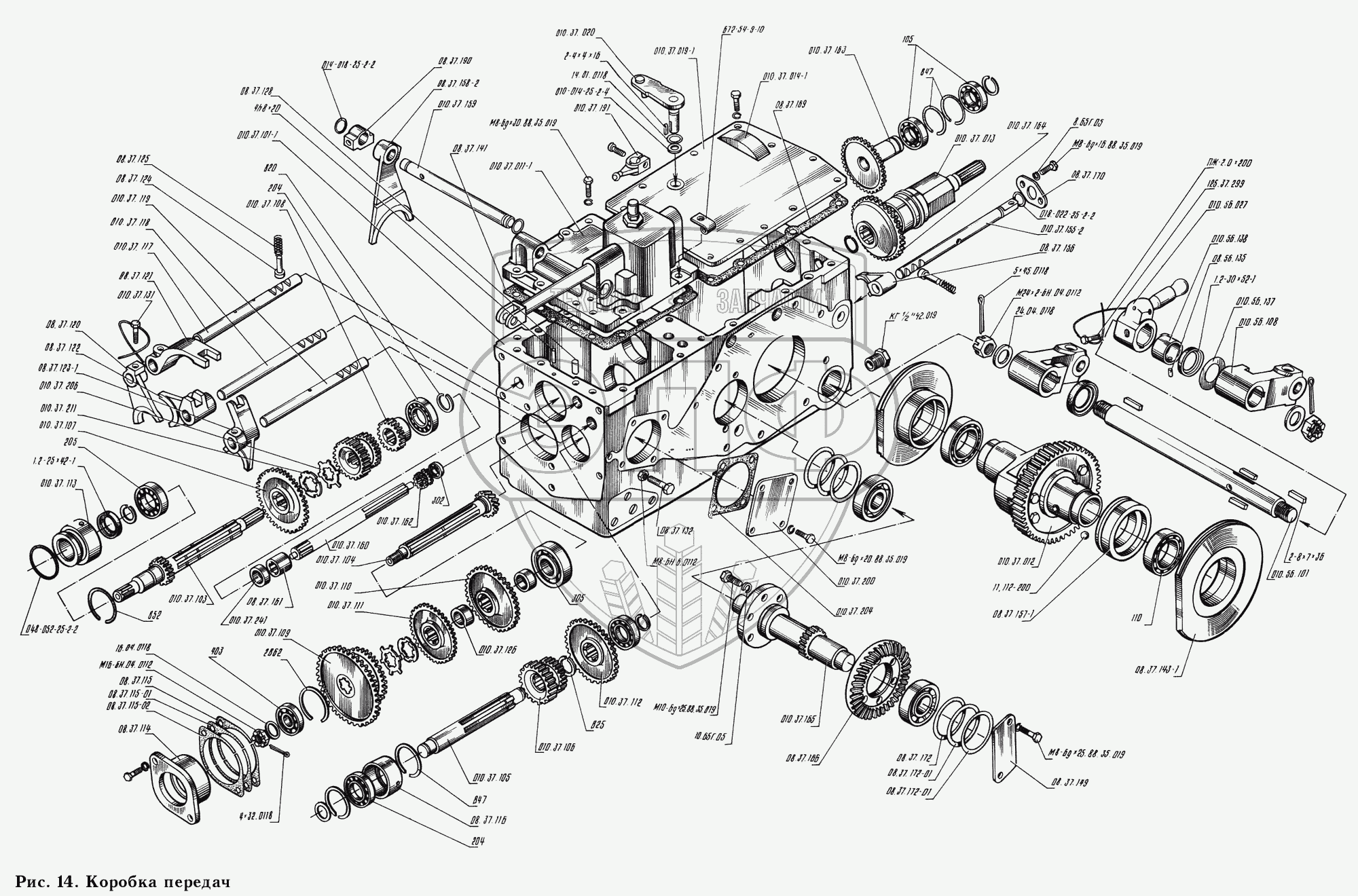Каталог запасных частей к технике: КМЗ-012. Коробка передач 010.37.001